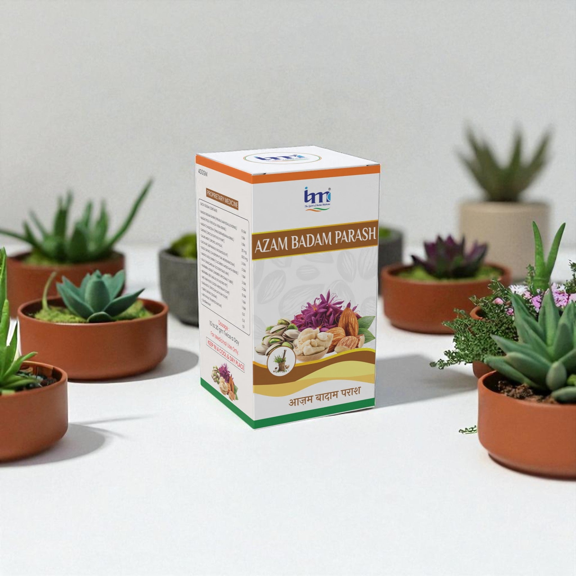 Azam Badam Parash is a rich Unani herbal preparation crafted from a blend of dry fruits, herbs, and natural ingredients. It is a highly nutritious supplement that strengthens the body, boosts energy, improves memory, and enhances overall vitality. Enriched with Badam, Pista, Chilgoza, Kaju, Zafran, Musli Safaid, Salab Misri, and other premium herbs, this tonic is an ideal health booster for all age groups.