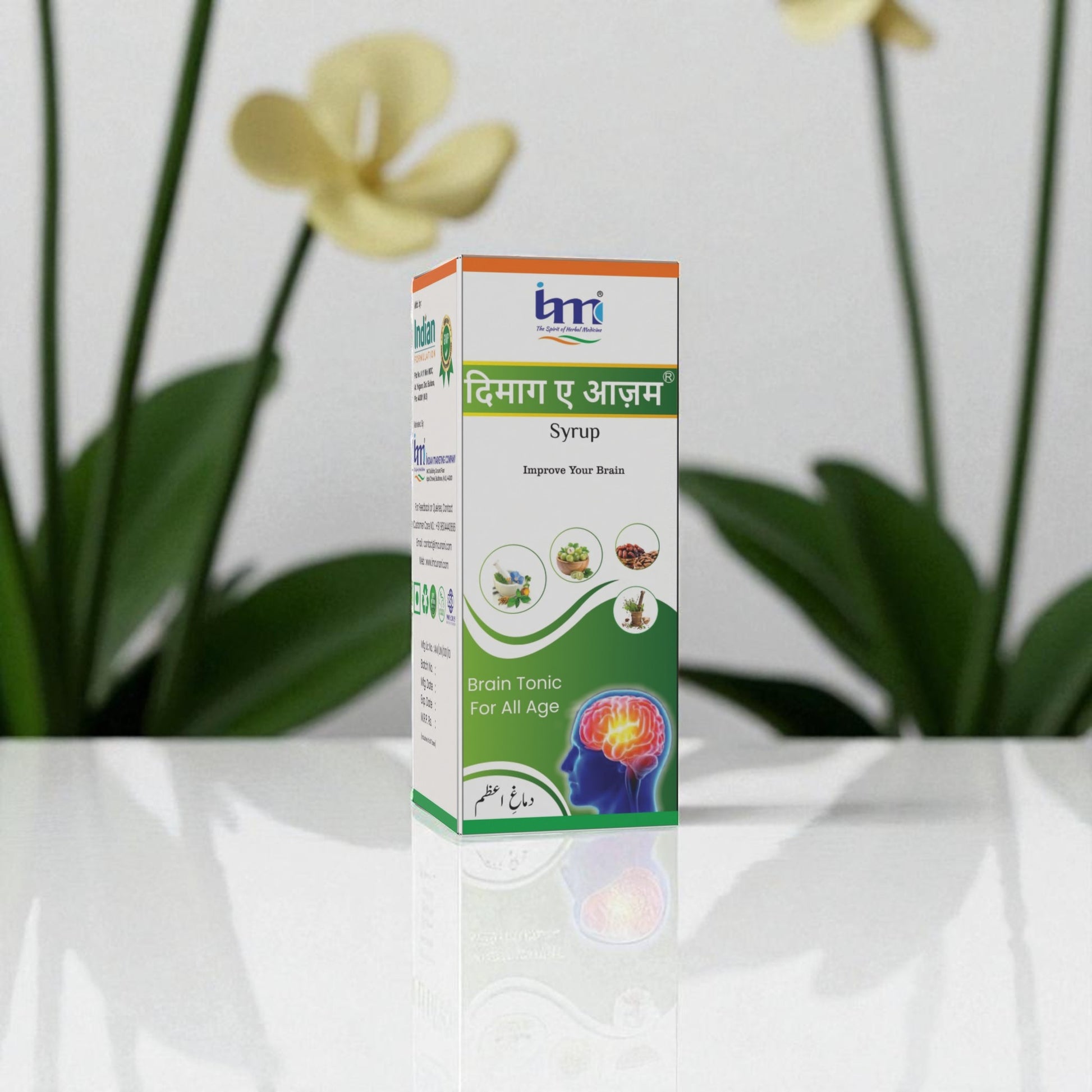 Dimagh-e-Azam Syrup is a unique Unani brain tonic enriched with a powerful blend of herbs like Brahmi, Haleela Zard, Baleela, Ushba, Mawiz Munaqqa, Mastagi Roomi, Jadwar, Ood-e-Saleeb, Kalonji, Arq-e-Gulab, Arq-e-Kewra, Amla, and Asgand. This herbal formula strengthens the nervous system, enhances memory, sharpens focus, and relieves mental fatigue.