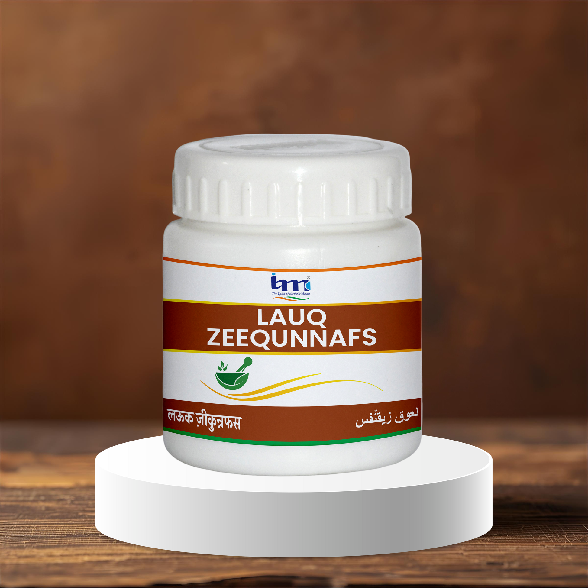 Take 5–10 g of IMC Unani Laooq Zeequnnafs twice daily with lukewarm water, or as directed by a Unani physician.
