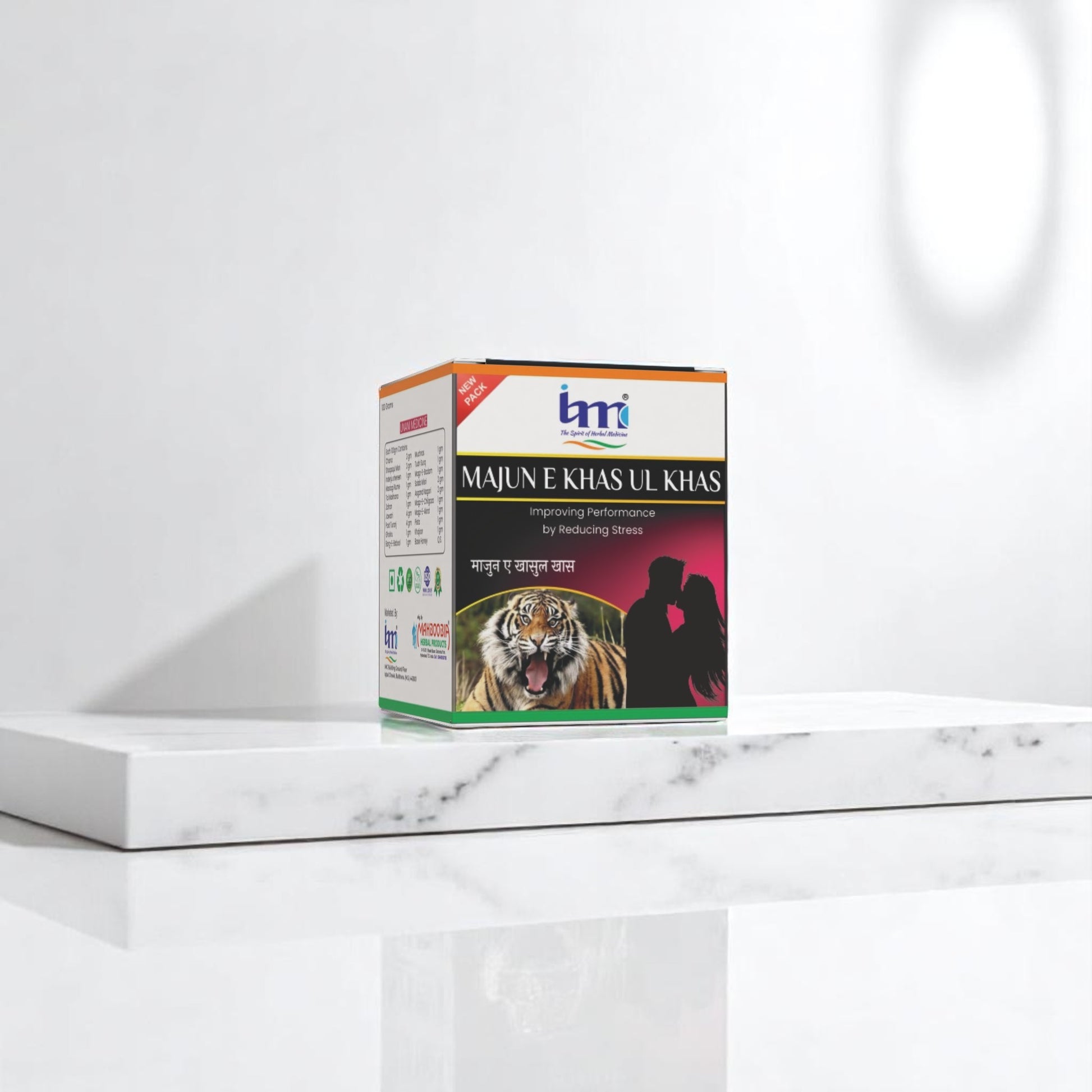 IMC Herbal Majun Khas Ul Khas Natural Herbal Tonic for Male Strength, Vitality & Stamina IMC Herbal Majun Khas Ul Khas is a traditional Unani herbal preparation made to boost male strength, stamina, and energy levels naturally. It nourishes the body, strengthens the nervous system, and helps overcome general weakness, fatigue, and lack of vitality, improving overall wellness without harmful chemicals. ________________________________________ Key Benefits: • Helps increase strength, stamina, and energy naturally. • Supports male reproductive health and confidence. • Reduces fatigue, weakness, and stress. • Improves overall physical performance and vitality. • 100% herbal, non-hormonal, and safe for long-term use. ________________________________________ Main Ingredients: • Ashwagandha – Boosts energy and reduces weakness. • Shilajit – Supports stamina and male vitality. • Safed Musli & Other Herbal Extracts – Nourish the body and strengthen nerves naturally. ________________________________________ How to Use: • Take 1–2 teaspoons twice daily with warm milk or water, or as advised by your physician. ________________________________________ Why Choose IMC Herbal Majun Khas Ul Khas? ✔ Made with time-tested Unani herbs for men’s health. ✔ Safe, natural, and free from harmful chemicals. ✔ Helps maintain strength, energy, and overall vitality. ✔ Trusted IMC Herbal quality for male wellness. ________________________________________ ✅ Pack Size: 100g / 150g / 300g ✅ For natural support in men’s stamina, strength, and general health.