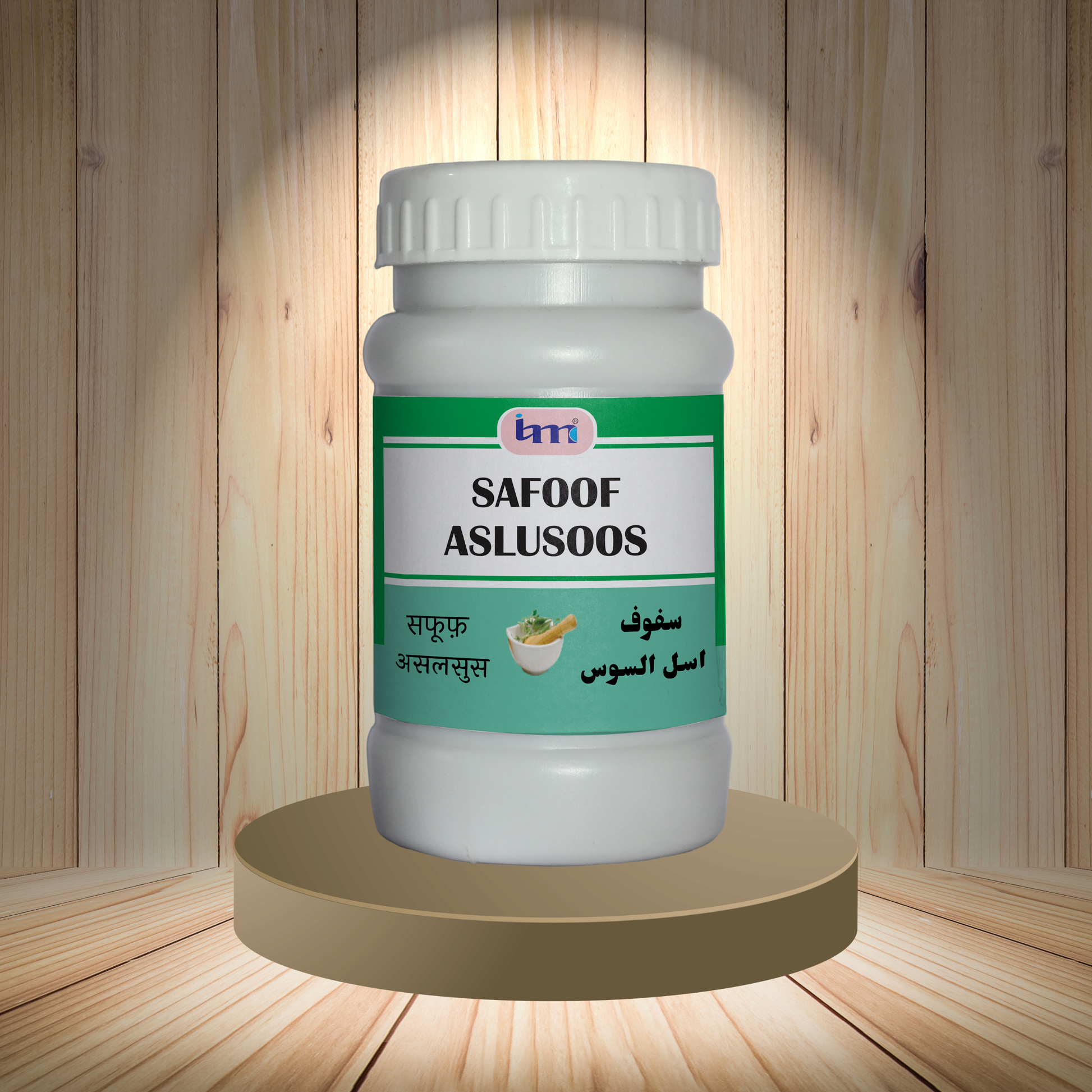 Sufoof Aslussoos IMC Unani SUFOOF Aslussoos is a traditional Unani herbal formulation prepared with Mulethi and other strengthening herbs. It is specially designed to increase semen density, control all types of spermatorrhoea (involuntary seminal discharge), and provide relief in premature ejaculation. With its natural aphrodisiac and nervine tonic properties, it strengthens the reproductive system and helps restore stamina and vitality.
