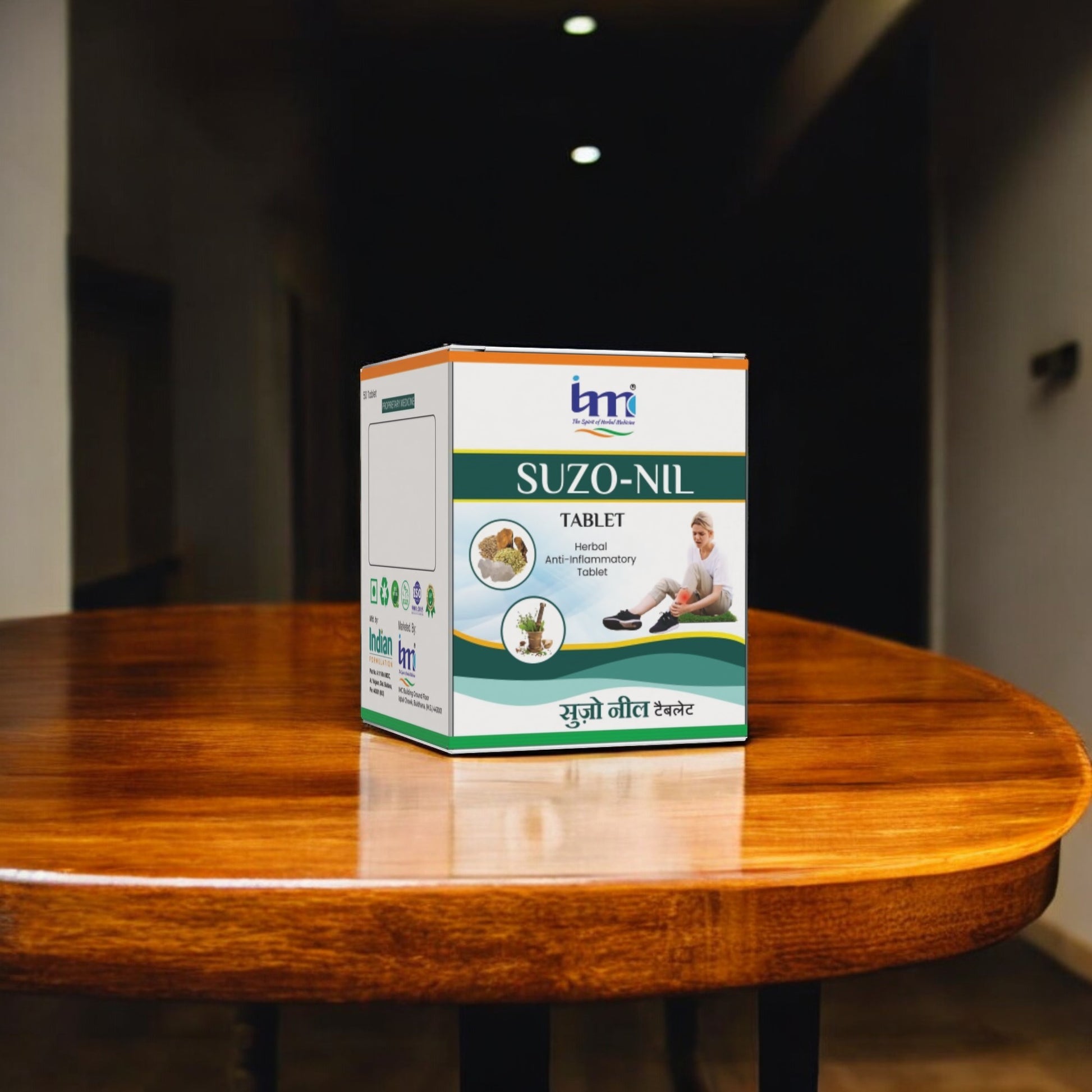 IMC Herbal Suzo Nil Tablet Natural Herbal Support for Pain Relief & Inflammation Control IMC Herbal Suzo Nil Tablet is a traditional Unani herbal formula specially made to reduce pain, swelling, and inflammation naturally. It helps relieve joint pain, muscle stiffness, backaches, and arthritis discomfort, improving mobility and overall physical comfort without harmful chemicals or side effects. ________________________________________ Key Benefits: • Acts as a natural anti-inflammatory and pain-relief supplement. • Helps reduce joint pain, swelling, and stiffness. • Useful for arthritis, back pain, and body aches. • Supports healthy bones, flexible joints, and mobility. • 100% herbal, safe for long-term daily use. ________________________________________ Main Ingredients: • Shallaki (Boswellia) – Known for anti-inflammatory and joint support properties. • Guggul Extract – Helps relieve pain and improve flexibility. • Ashwagandha & Herbal Extracts – Strengthen muscles and bones naturally. ________________________________________ How to Use: • Take 1 tablet twice daily with water or as advised by a physician. ________________________________________ Why Choose IMC Herbal Suzo Nil Tablet? ✔ 100% natural and chemical-free formula. ✔ Safe for daily use without harmful side effects. ✔ Helps maintain pain-free, strong, and flexible joints naturally. ✔ Trusted IMC Herbal quality for pain and inflammation support. ________________________________________ ✅ Pack Size: 20 / 50 Tablets ✅ For natural relief from pain, swelling, and joint discomfort.